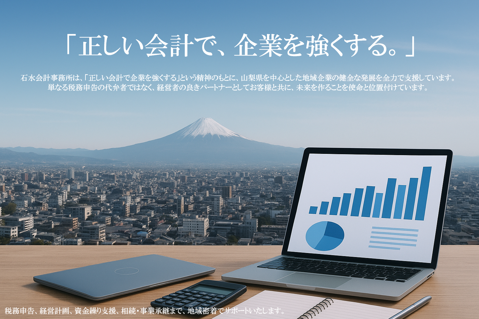 山梨県を中心に中小企業の経営支援・税務申告・資金繰り・事業承継まで、経営者の皆様とともに歩むパートナーです。